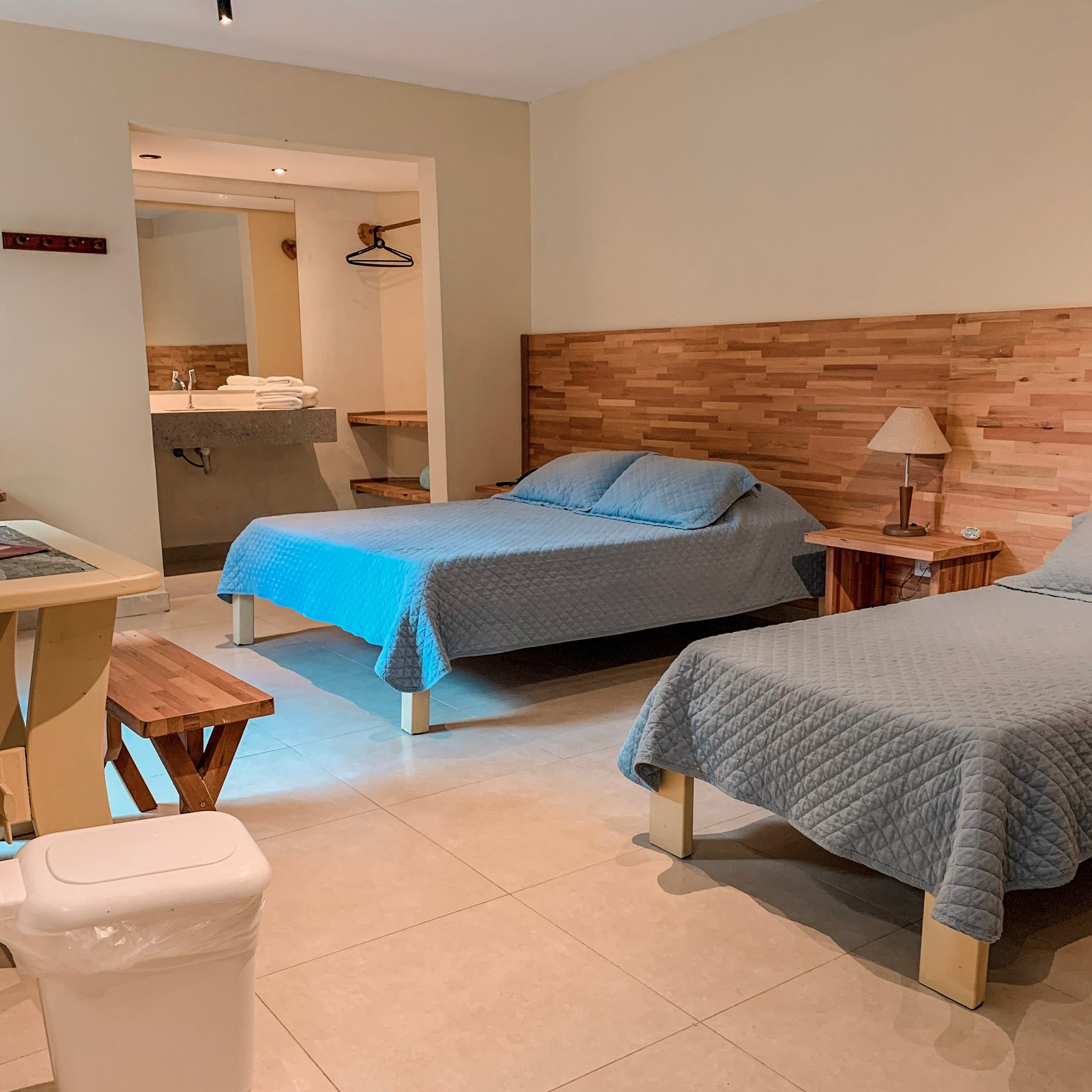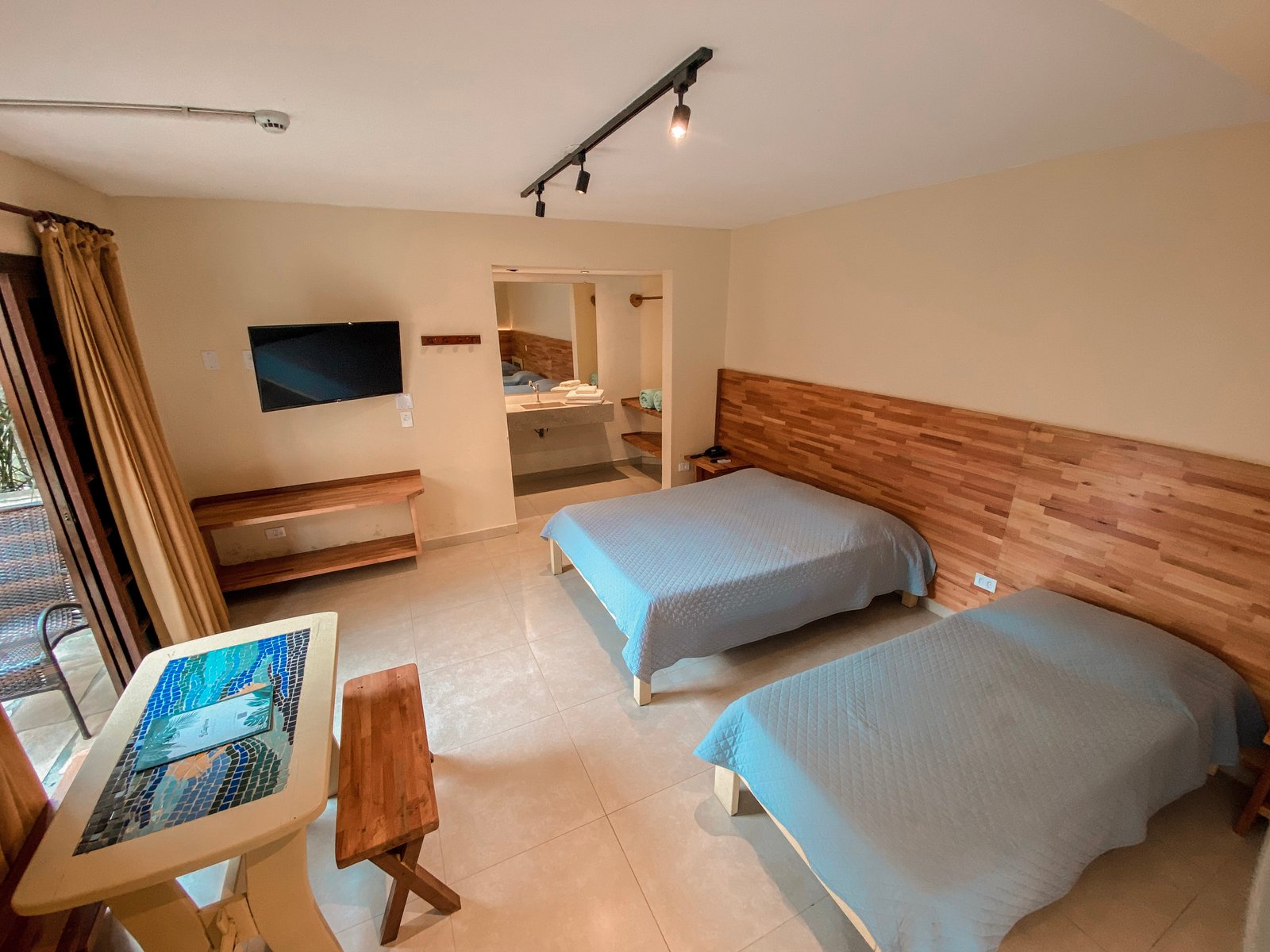 Todos os apartamentos possuem varanda ampla, além disso o quarto é equipadas com Interfone, Ar condicionado, Ventilador de teto, TV , Minibar e Banheiro que pensando na sustentabilidade é equipado com ducha aquecida por sistema de aquecimento solar.